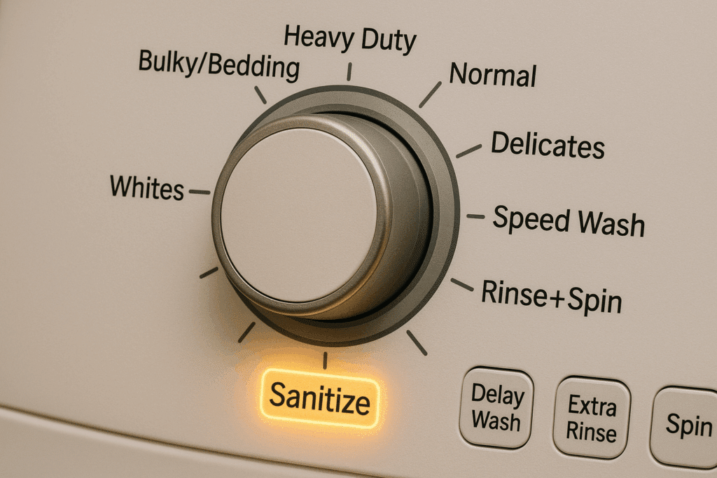 You’ve probably noticed the “Sanitize” or “Sanitary” setting on your washing machine and wondered what it’s for. As your clean-obsessed Chicago neighbors, we want to demystify this feature. In plain terms, the sanitize cycle is a special wash program that uses extra-hot water and extended wash time to kill germs. It’s designed to eliminate 99.9% of bacteria on clothes – far beyond what a regular wash cycle can do. In this article, we’ll explain what the sanitize cycle is, how it differs from other machine wash cycles, when to use it (and when not to), and why it shouldn’t be your everyday setting.