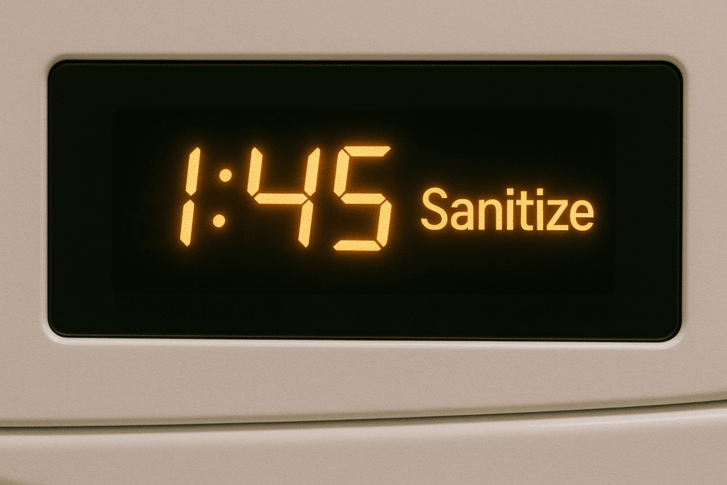 - Longer cycle time: The average washing machine cycle time for a Normal load is around 50–60 minutes. In contrast, a sanitize cycle typically takes about 90 minutes to 2 hours to complete. The washer spends extra time heating the water and often extends the wash and rinse phases to ensure germs are eliminated. Don’t be surprised – that added time is the trade-off for a deeper clean.